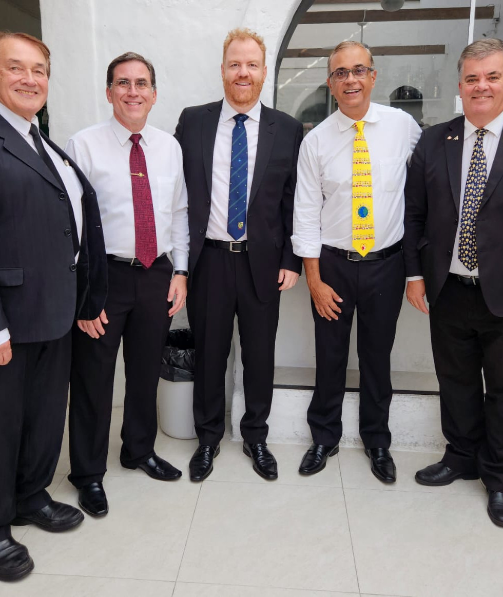 Da esquerda para a direita, Ilustre Potentado AMAL-SP, Marcelo Rufini, Potentado SALAH - Guilherme Morandini Wallner, Past Potentado SALAH - Luis Eduardo Silva de Barros, Guia Oriental SALAH - Mario Correa e Nobre Mauricio Coelho Mafra, Sumo Sacerdote SALAH.