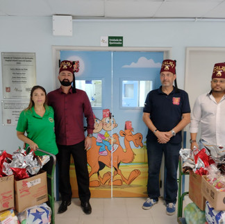 Na data de 08 de Abril (véspera de domingo de Páscoa) o Salah Shriners promoveu mais uma ação fraterna, levando nesta véspera de Páscoa muito amor e alegria às crianças internadas no HIJG. Além de muito carinho, foram entregues 19 ovos de Páscoa, 19 cestas básicas e 30 kits com bombons, balas e chocolates, distribuídos para todas as crianças que estavam internadas na Ala de Queimados e também na Ala de Ortopedia.